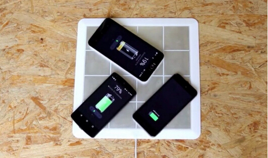 和感應(yīng)式充電器相比,它的充電速度更快,而且你可以把多個設(shè)備同時放在充電板上充電。只要貼紙的兩端分屬不同的金屬方塊,你的手機就會開始充電。