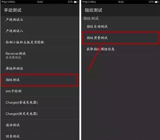 如果以上的操作都已經(jīng)正確的完成,指紋識別仍然無法正常使用,這個時候需要打開手機的撥號鍵輸入*#808#,然后找到指紋測試——指紋質(zhì)量測試——選擇開始錄入——然后手指放置上去看是否能夠有指紋圖像質(zhì)量的數(shù)據(jù)即可。