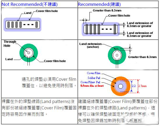 1. 軟板設計時的通孔(Through Hole)、絕緣覆蓋層(Cover Film)、間的尺寸關係