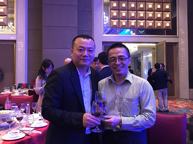 圖為深聯(lián)電路徐總與帝晶光電董事長合影