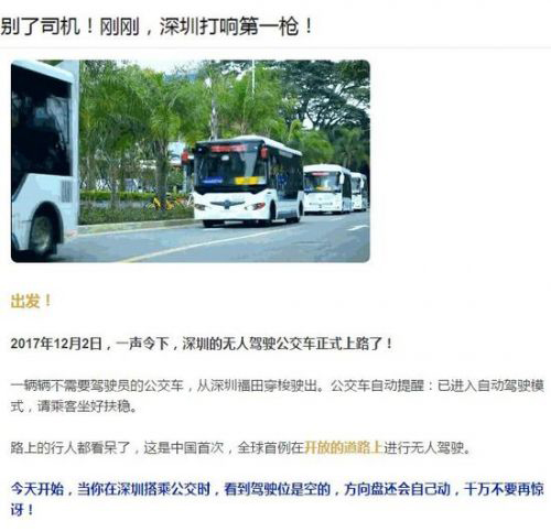 這不,深圳巴士集團(tuán)就出來(lái)辟謠了:稱“無(wú)人駕駛的實(shí)現(xiàn)仍停留在功能和技術(shù)層面,只能說(shuō)是智能駕駛”, “正式上路其實(shí)是試運(yùn)行,處于數(shù)據(jù)采集階段”;“現(xiàn)在的駕駛還是需要司機(jī)對(duì)車輛操作進(jìn)行一定的干預(yù)”;“真正的無(wú)人駕駛上路至少得十幾年”……