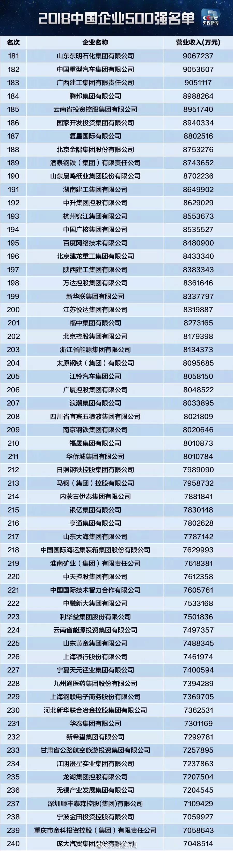 軟板之2018中國(guó)企業(yè)500強(qiáng)新鮮出爐!