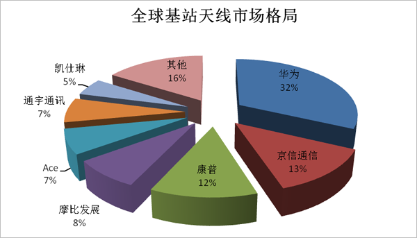 《每日財報》了解到,在基站天線領域,以華為為代表的國內企業(yè)具備明顯的市場優(yōu)勢。根據EJL Wireless Research發(fā)布的報告,全球基站天線市場份額排名靠前的公司依次為華為(32%)、京信通信(13%)、康普(12%)、摩比發(fā)展(8%)、Ace(8%)、通宇通訊(7%)、凱仕琳(5%)等。