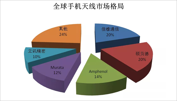我國企業(yè)在終端天線市場的市場份額占比相比射頻器件境況要好,信維通信、碩貝德、立訊精密均占據一定比例的市場份額。