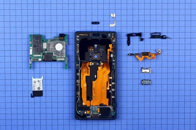 機(jī)身采用時(shí)下旗艦機(jī)型常用的熱熔膠去固定,有別于此前我們拆解過(guò)的手機(jī),索尼 Xperia XZ2 采用前拆式設(shè)計(jì),所以拆解時(shí)要從正面屏幕開(kāi)始拆起。