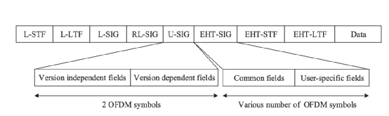 新一代Wi-Fi標(biāo)準(zhǔn)的設(shè)備通過前代標(biāo)準(zhǔn)的前導(dǎo)碼中解碼信息,也就是L-SIG。而Wi-Fi 7引入了一個U-SIG通用前導(dǎo)碼,只需對其進(jìn)行填充,改變版本號、UL/DL等參數(shù),就可以保證兼容Wi-Fi 7以后的標(biāo)準(zhǔn)。