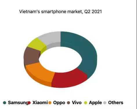 就在一年后,市場調(diào)研機構(gòu)Counterpoint Research發(fā)布數(shù)據(jù)顯示,今年第二季度中國手機品牌已經(jīng)占據(jù)了越南將近50%的市場份額。另外,在越南10大暢銷的智能手機中,有6款是中國品牌,包括小米的紅米9和紅米Note10、OPPO A15和OPPO Reno5以及vivo Y20等。