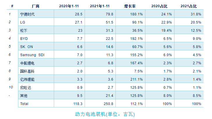 柔性電路板之2021年全球動(dòng)力電池前十榜單!