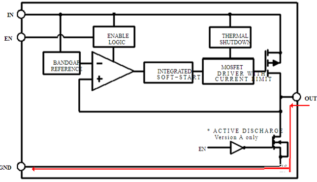 下圖中的LDO內(nèi)部就集成了快放電功能。