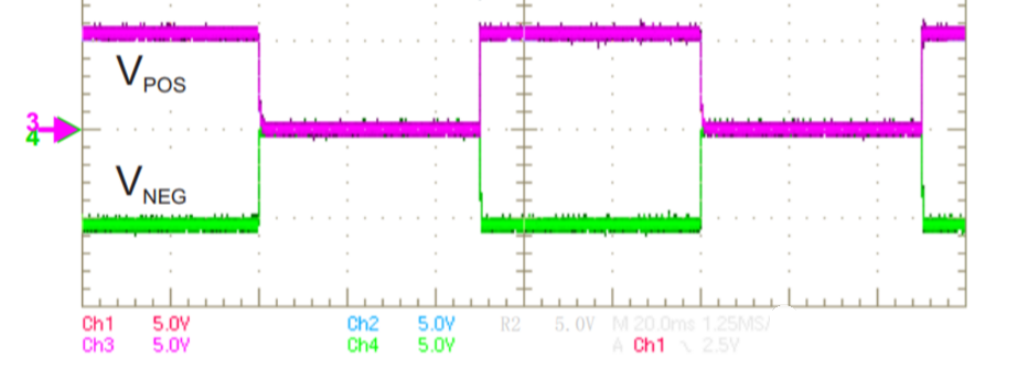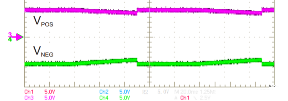 如果沒有快速放電的功能的話,下圖Vpos和Vneg下電非常緩慢,拖泥帶水,,非常容易出現(xiàn)閃屏的現(xiàn)象。