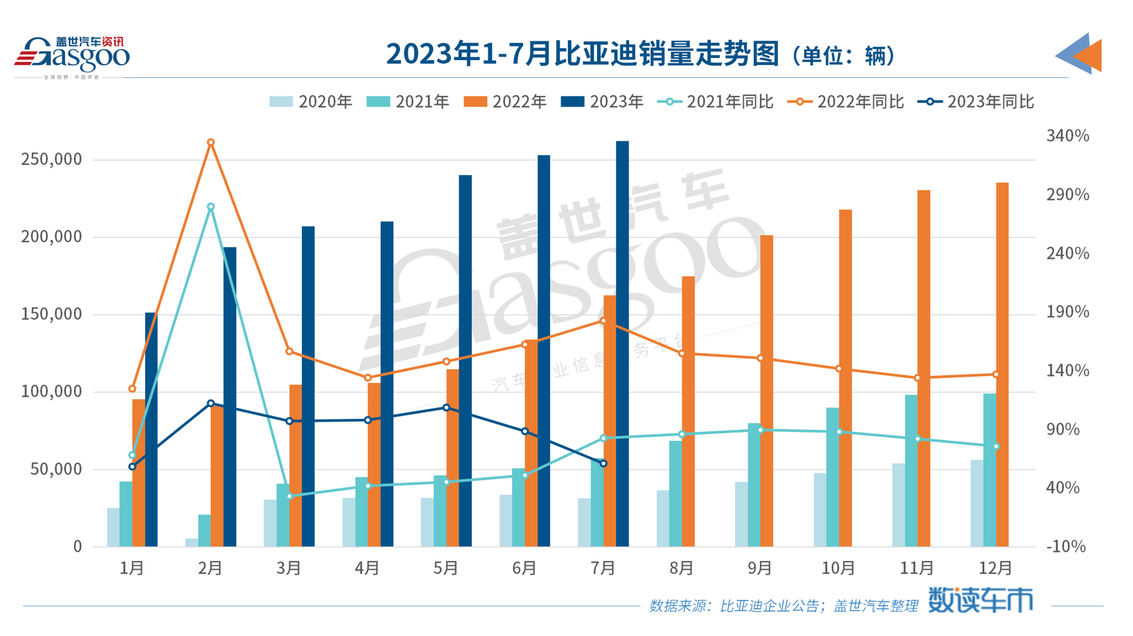 7月比亞迪的月銷量再次刷新歷史新高,超過(guò)了26萬(wàn)輛。另?yè)?jù)了解,就在今天(8月9日),比亞迪將舉辦第500萬(wàn)輛新能源汽車下線儀式。蓋世汽車整理的銷量數(shù)據(jù)顯示,從第1輛新能源車到第100萬(wàn)輛,比亞迪用時(shí)13年;從第100萬(wàn)輛到200萬(wàn)輛,比亞迪用時(shí)1年;從200萬(wàn)到300萬(wàn)輛,僅用了半年時(shí)間。如今,從300萬(wàn)到500萬(wàn)輛,比亞迪用了不到9個(gè)月時(shí)間,市場(chǎng)勢(shì)頭之猛,在國(guó)內(nèi)市場(chǎng)上,堪稱是史無(wú)前例。