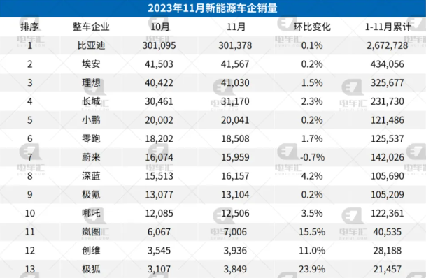 柔性電路板廠之11月新能源汽車銷量公布!