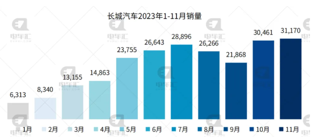 長(zhǎng)城汽車新能源乘用車11月銷量31,170輛,同比增142%,環(huán)比增長(zhǎng)%;今年1-11月累計(jì)銷售231,730輛,同比增長(zhǎng)92%,前三季度環(huán)比持續(xù)提升,連續(xù)8個(gè)月實(shí)現(xiàn)同比增長(zhǎng)。