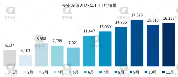 深藍(lán)汽車11月交付新車16,157輛,同比增長(zhǎng)155%,環(huán)比增長(zhǎng)4%。今年1-11月,深藍(lán)汽車共交付新車105,690輛。