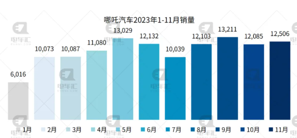 哪吒汽車11月交付新車12,506輛,同比下滑17%,環(huán)比增長(zhǎng)3%。截止11月末,哪吒汽車今年累計(jì)交付新車122,361輛,累計(jì)銷量同比下滑15%。