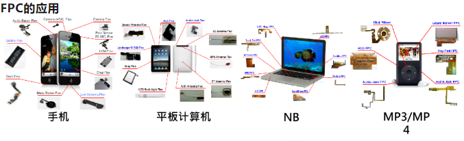 (2)利用FPC可縮小電子產(chǎn)品的體積和重量,適用電子產(chǎn)品向高密度,薄型化,小型化,高可靠方向發(fā)展的需要.因此,FPC在航天,軍事,移動(dòng)通訊,筆記型計(jì)算機(jī),PDA,數(shù)位相機(jī)等產(chǎn)品領(lǐng)域上得到了廣泛的應(yīng)用.