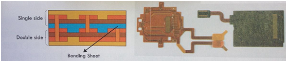 對于同時(shí)需要硬板及FPC的產(chǎn)品設(shè)計(jì)結(jié)構(gòu),可以采用所謂的軟硬板(Rigid Flex)技術(shù),它混合軟硬板一體并排除端子連接,直接以軟板將不同硬板連結(jié)在一起。典型多層軟硬板結(jié)合產(chǎn)品,如圖所示: