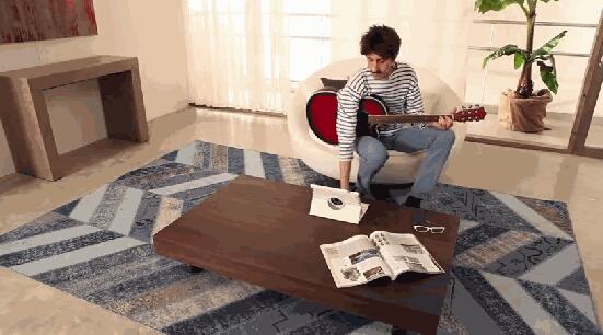 Ozzio Newood堪稱咖啡桌餐桌領(lǐng)域的變形變形金剛,人少的時(shí)候,可以當(dāng)做茶幾使用,如果人多了,可以將一側(cè)拉伸,然后從里面掏出折疊的桌面,直接將Ozzio Newood延長,我們可以在上面下棋、吃飯,絕對(duì)非常實(shí)用。
