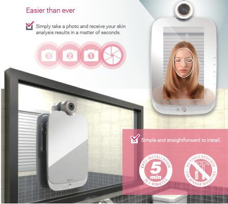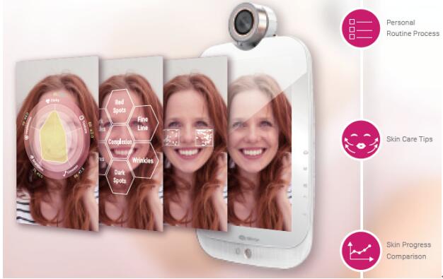 當(dāng)然,HiMirror的攝像頭不簡(jiǎn)單,內(nèi)置的傳感器可以對(duì)面部皮膚進(jìn)行分析,包括皺紋、細(xì)紋、黑眼圈、膚色、黑斑、紅點(diǎn)、毛孔等等,以圖形化的形式展示你的皮膚問(wèn)題,并給出一些改善建議。