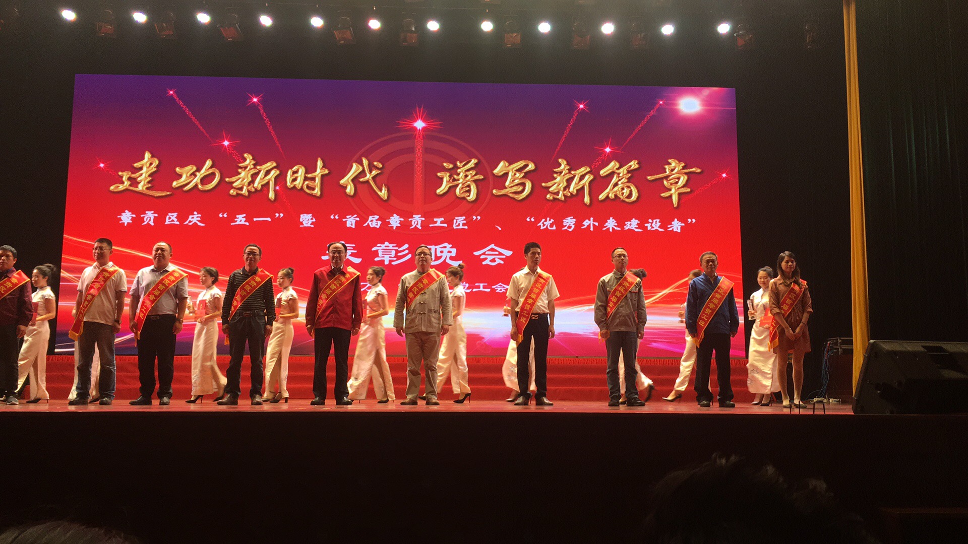 就在當(dāng)晚19:30分,章貢區(qū)慶“五一”暨“首屆章貢工匠”、“優(yōu)秀外來建設(shè)者”表彰晚會在區(qū)政府附樓禮堂隆重舉行,600余名企業(yè)、機關(guān)事業(yè)單位、群團組織職工代表歡聚一堂,共同慶祝屬于全世界工人階級和勞動人民共同的節(jié)日——“五一”國際勞動節(jié)。