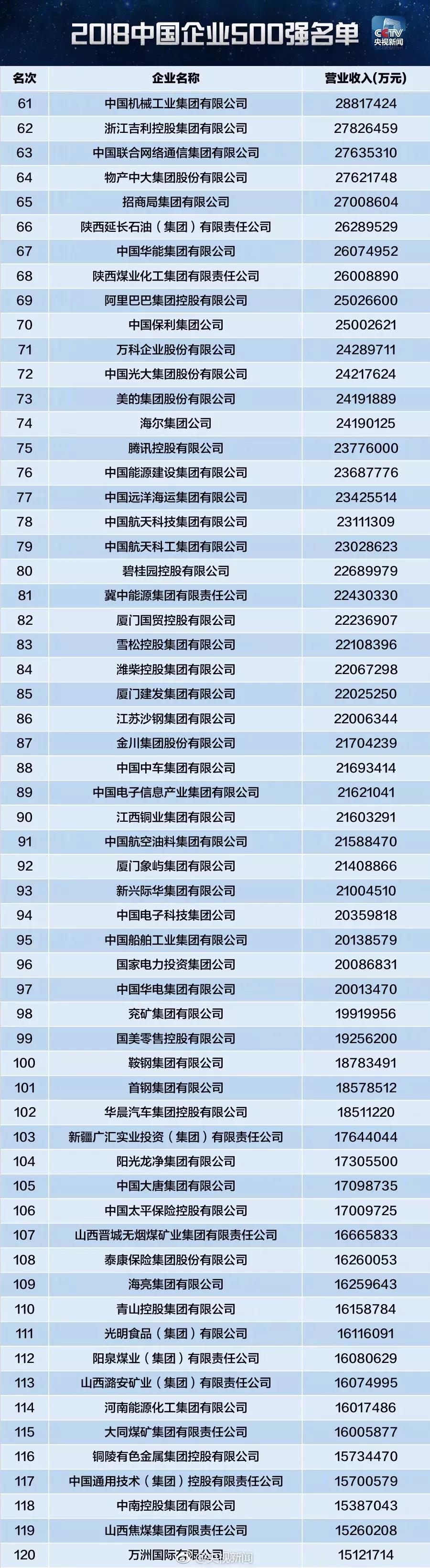 當(dāng)前位置:首頁(yè)? 行業(yè)資訊 ? 軟板之2018中國(guó)企業(yè)500強(qiáng)新鮮出爐!