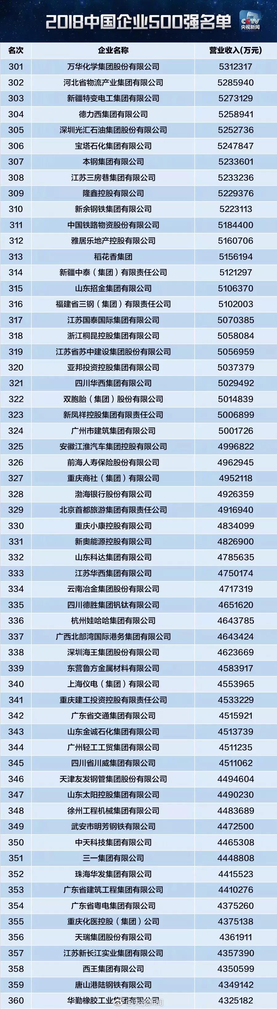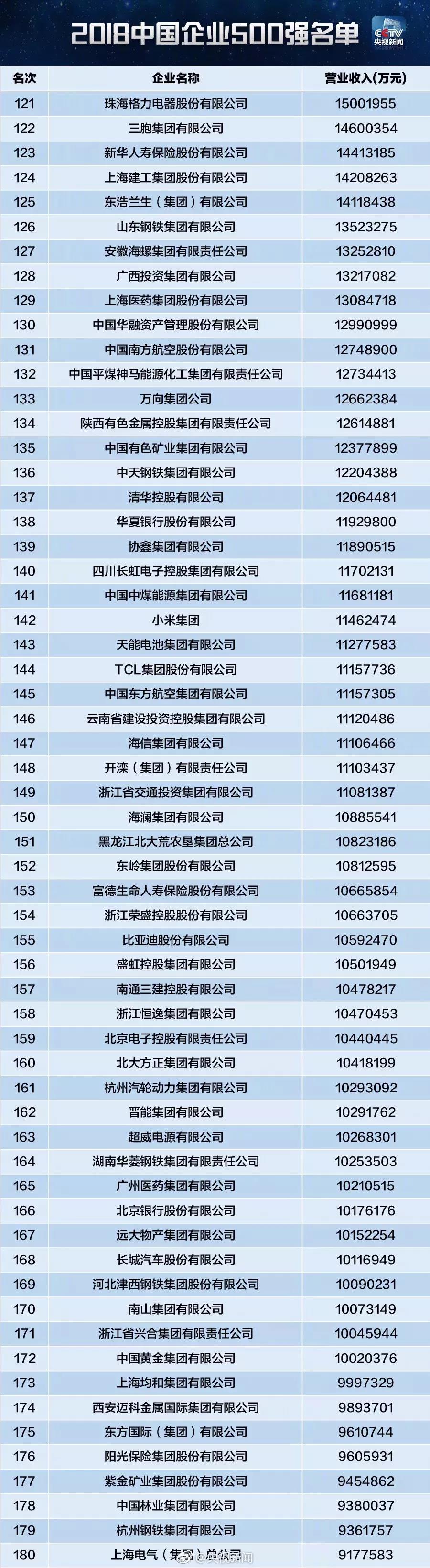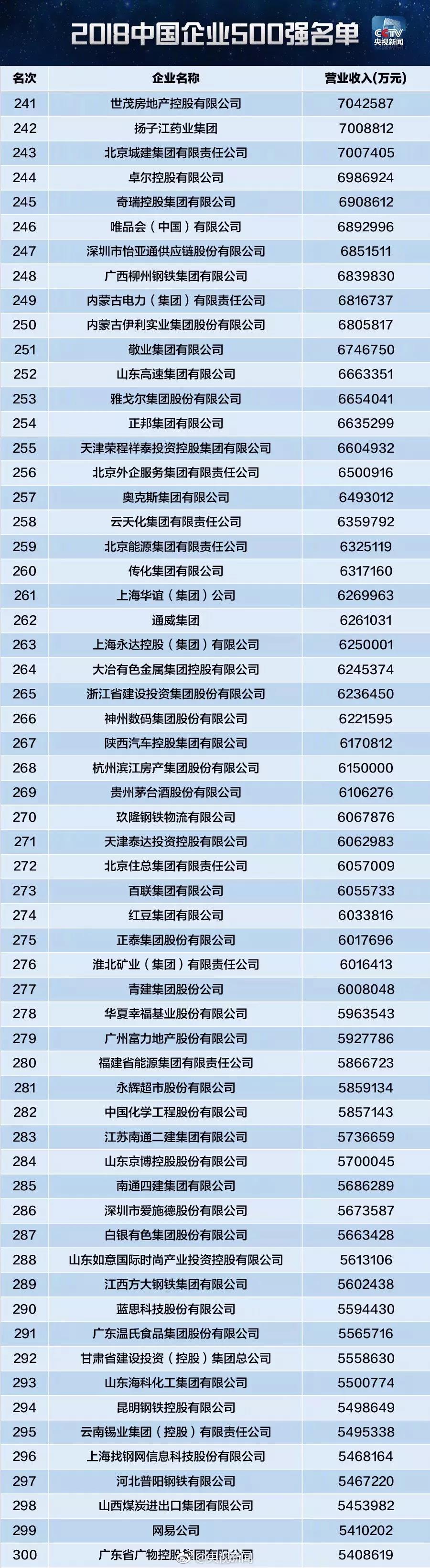 軟板之2018中國(guó)企業(yè)500強(qiáng)新鮮出爐!