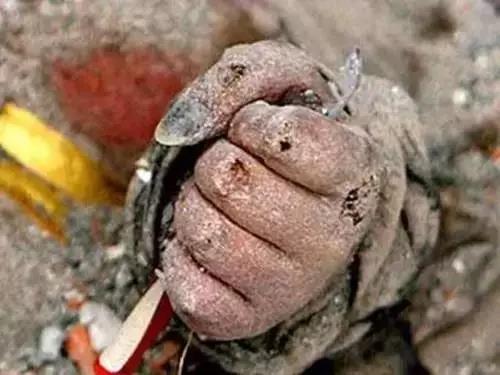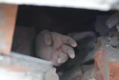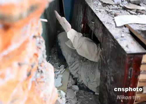 ▲2008年5月16日,被困廢墟72小時的代軍勇伸出等待救援的手,經(jīng)過23小時的營救,他死里逃生。