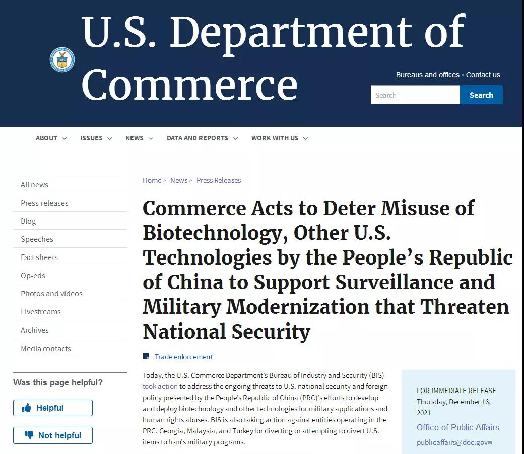 據(jù)指紋模塊軟板小編了解,在當(dāng)?shù)貢r(shí)間周四(16日),美國(guó)商務(wù)部工業(yè)與安全局(BIS)發(fā)布聲明,以所謂“違反美國(guó)外交政策或國(guó)家安全利益”為由,將34家中國(guó)機(jī)構(gòu)列入其所謂的“實(shí)體名單”。