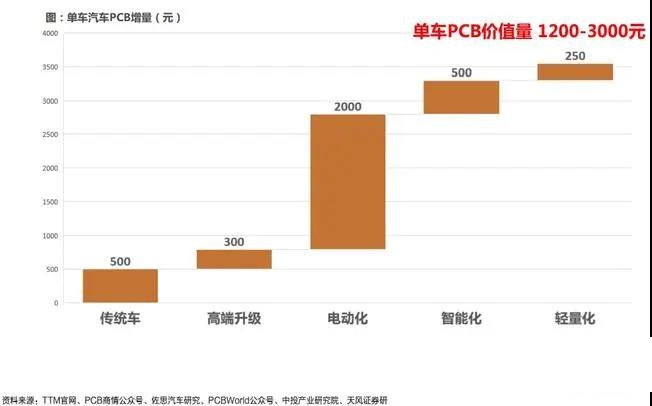 汽車PCB增長動力來自于新能源汽車的滲透&單車PCB價值量提升。