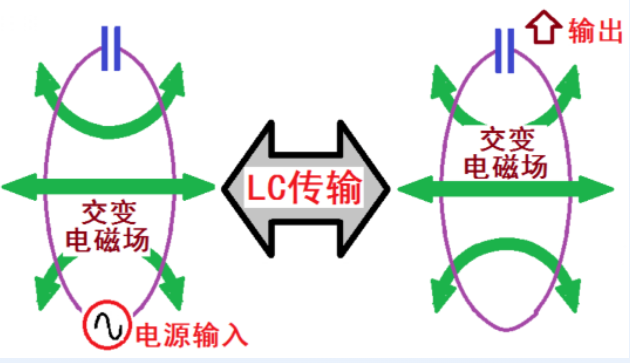 圖中的能量以磁場形式進(jìn)行無線傳輸,相當(dāng)于一個隔離變壓器實現(xiàn)了無線充電,形成電源發(fā)送端和能量接收端。