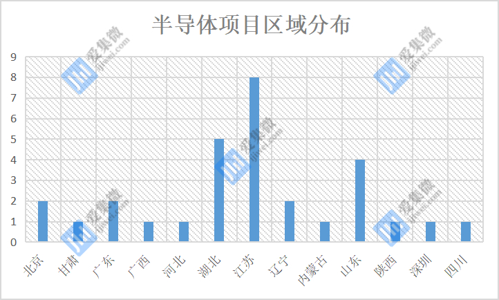 從項(xiàng)目數(shù)量的區(qū)域分布來看,江蘇、湖北、山東在半導(dǎo)體項(xiàng)目推介意愿上依然十分積極與強(qiáng)烈。