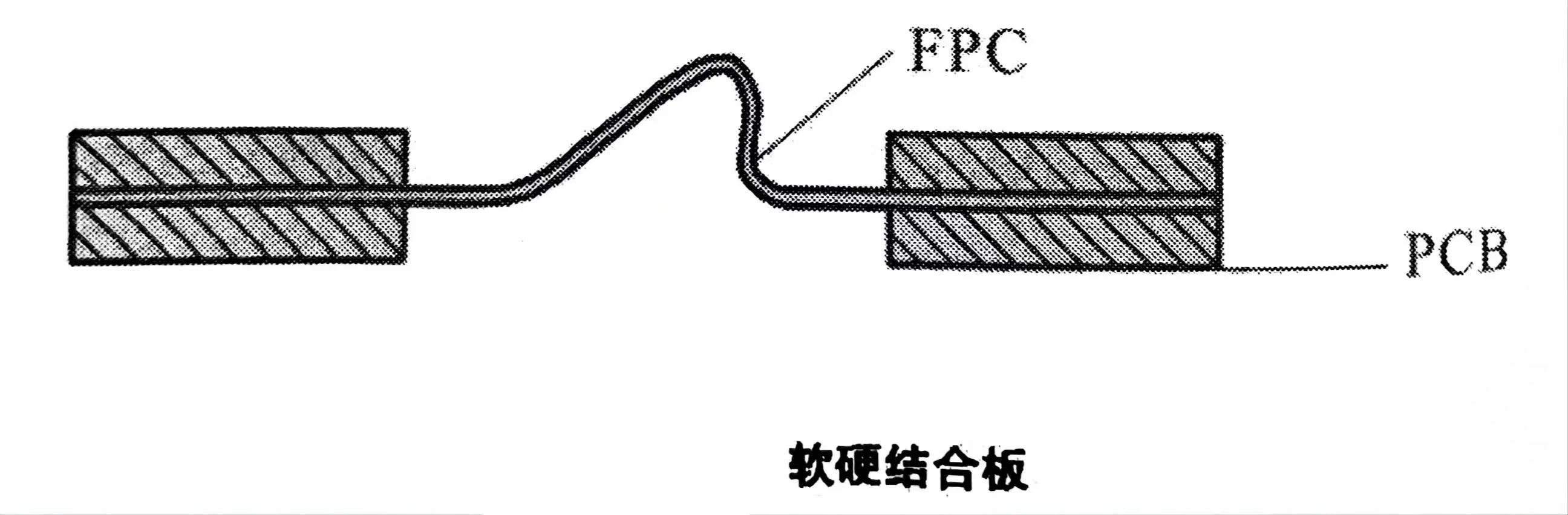 (7)軟硬結(jié)合板:分別利用軟板的可撓性及硬板的支撐性,結(jié)合成一個(gè)多元化的電路板,如下圖所示: